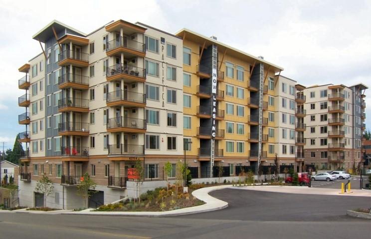This was a two-phase urban infill project near the Tacoma Mall in Tacoma. Building A is 80 units on six stories over a parking garage. Building B is 97 units on seven stories over a parking garage.